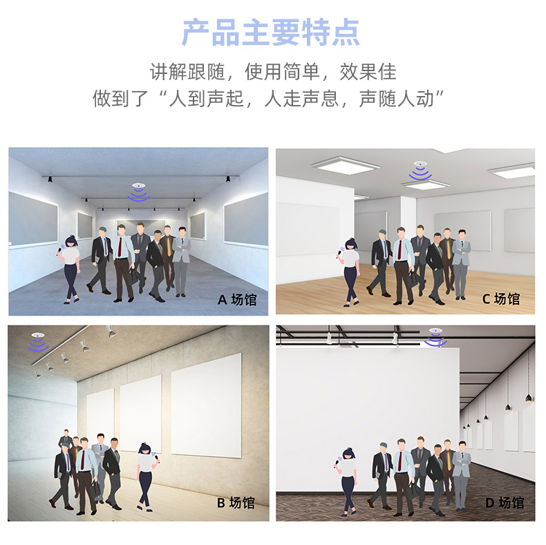 團隊分區講解系統,也被稱為團隊智慧講解系統、展廳分區講解系統、展館講解系統、分區解說系統、分區跟隨講解系統等不同稱謂,適用于講解員向游客進行團隊講解的情況,講解員可手持無線講解發射器進行語音講解,參觀者無需佩戴耳機,也可以聽到現場預先安裝的分區擴音設備發出的聲音,避免耳機對參觀者造成的不適及分發和回收耳機的不便,或其他擴音設備(例如小蜜蜂等便攜擴音設備)在中大團隊講解中出現后排游客聽不清楚的情況。游客體驗較好,講解員走到哪里聲音就在哪里發出,避免多個團隊相互之間干擾。講解區域之間采用淡入淡出的不間斷、無縫平滑切換方式。“人到聲起,人走聲息,聲隨人動、如影隨形”。 隨著科技的發展,分區講解系統在展廳中得到了廣泛的應用。分區講解系統通過無線傳輸技術,將展廳劃分為不同的區域,并在每個區域內提供專門的講解內容。 在展廳中,分區講解器發揮著舉足輕重的作用。它不僅能夠為參觀者提供詳細的產品信息,還能通過定位技術,確保參觀者在特定區域內接收到與之相關的講解內容。這一系統極大地豐富了展廳的信息傳遞方式,使參觀者能夠更加深入地了解展品,提升參觀體驗。 此外,分區講解系統配合自助講解器還具有高度的靈活性和可擴展性。展廳管理者可以根據需要,隨時更新講解內容,甚至實現多語種講解,滿足不同國家和地區參觀者的需求。 展望未來,隨著技術的不斷進步,分區講解系統有望實現更多創新。例如,結合虛擬現實技術,為參觀者提供更加沉浸式的體驗;或者通過大數據分析,為每位參觀者提供個性化的講解服務。這些創新將進一步提升展廳的吸引力,促進文化的傳播與交流。 |