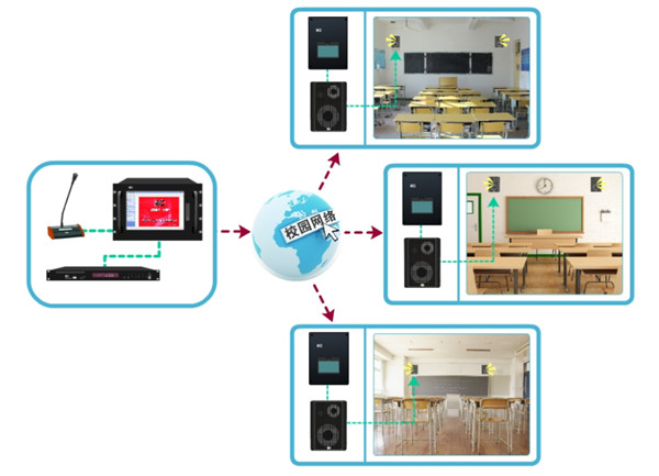 教學講解系統(tǒng)系統(tǒng)是每個學校不可缺少的基礎設施之一,盡管近幾年來視頻技術和網(wǎng)絡技術在飛速的發(fā)展,但教學講解系統(tǒng)仍以它的實用性、經(jīng)濟性、便捷性被各類學校所應用。我國現(xiàn)有的各類學校基本上都有公共廣播系統(tǒng),它主要用于各種公共場合,如舉行全校的活動、通知、升國旗、課間操、課間音樂、表揚先進、召開全校大會等。隨著現(xiàn)代信息技術的不斷發(fā)展,多媒體教學在廣大中小學的不斷普及,利用廣播系統(tǒng)進行語音教學的需求在不斷的增加,特別是音樂鈴聲的普及,英語聽力考試的實施等,對現(xiàn)行學校廣播系統(tǒng)的功能、容量、音質、智能化水平等都提出了更高的要求。